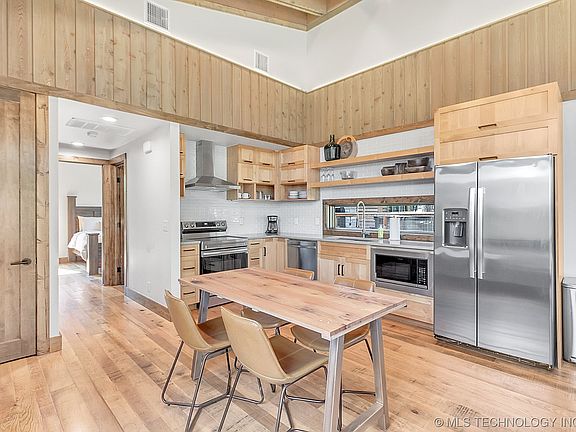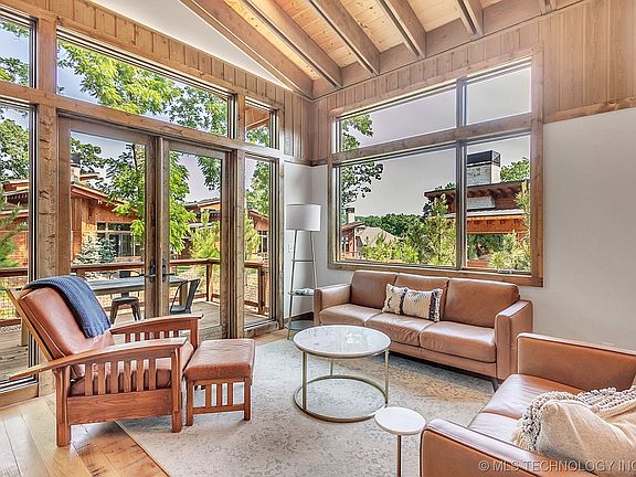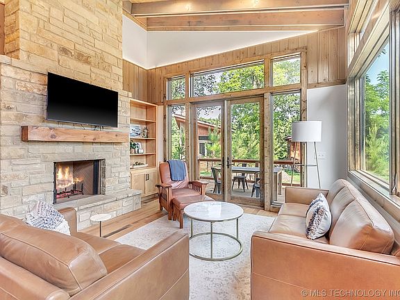 Experience the ultimate lakeside escape on Monkey Island in the prestigious 94 West community at Grand Lake! This captivating 1-bed, 1-bath rustic modern home offers luxury and comfort within a private gated community. Step inside to find a spacious open-concept living area, with large windows showcasing stunning woodland views. The impressive stone fireplace creates a cozy atmosphere, perfect for relaxing evenings. The gourmet kitchen features quartz countertops, modern cabinetry, and top-of-the-line appliances, including a refrigerator, seamlessly connecting to the dining and living areas. The serene bedroom boasts ample storage and picturesque views, while the contemporary bathroom provides a tranquil space to unwind. The washer and dryer inclusions offer added convenience. Outside, enjoy the expansive wooded deck, ideal for hosting gatherings or savoring a quiet moment immersed in nature. The standing seam roof ensures elegance and durability. Nestled in a secure gated community, this property promises privacy and a welcoming atmosphere.