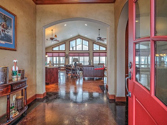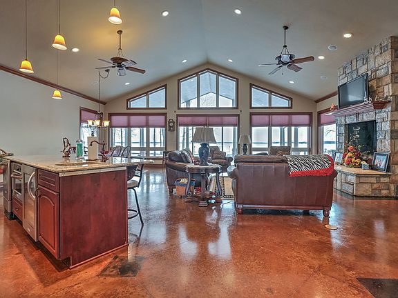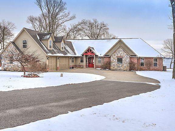 The entry of this gorgeous lake front home gifts you with an exquisite view of the lake! The 4 bed 4 bath one sstory home has extra wide halls to accommodate wheel chairs, and a lake front bedroom, with a handicapped bath. There is an upstairs hobby, or game room. The kitchen is open to a spacious, light filled dining and living room. Beautiful stained cement floors give the living area a precise, clean look. The bedrooms are large and each has a gracious view of the lake. The home is gorgeous. It is two large lots, and has two huge outdoor decks and covered porch. The home is on over an acre with 300 feet of shoreline. There is dock permit if you'd like to add a dock. Its a special property!