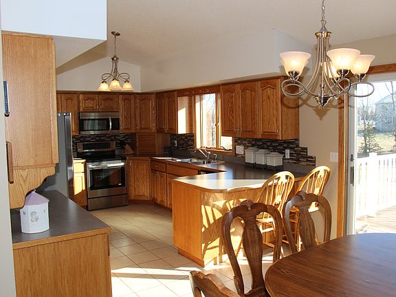 Beautiful ranch style home on 2 acres located right outside of Minot at the end of a cul-de-sac. This property is horse-friendly with mature trees and a large yard for gatherings and nightly bonfires. This home features 3 bedrooms and 2 full bathrooms on the main floor, one of which is the master bedroom with a beautiful en-suite bathroom with jetted tub and separate shower. There is a large eat-in kitchen with stainless steel appliances with a lot of counter and cabinet space. There is a spacious entry way and large living room that boosts beautiful sunlight. Downstairs has a very large family room with gas fireplace to keep you warm during the cold weather. There is also 2 more spacious bedrooms and a full bathroom with plenty of storage, a large laundry room, big storage room, and also a door leading out to the garage, which will make moving in much easier. Call your agent to set up a showing today!