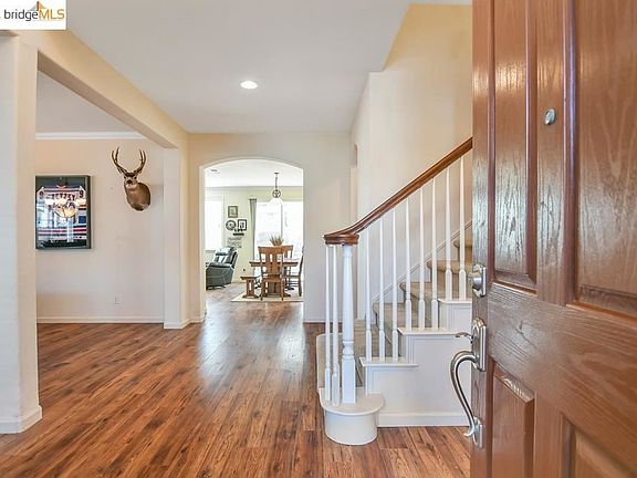 The Lakes Gated Community with beautiful Walking/Biking trails around multiple Lakes with Fountains, green belts, benches and physical fitness circuit, children's playgrounds with rock climbing wall, pickleball, baseball and basketball courts, bocce ball, chess tables, picnic tables and BBQ, bordered by deep water Delta sloughs and walkable levees. Fabulous floor plan with 4 bed + den + loft, 3,5 bath (1 bed, 1,5 bath + den downstairs). Spacious detached bonus room off entry courtyard (currently used as a gym) with French doors and its own dedicated AC. Peaceful, private backyard with no rear neighbors.