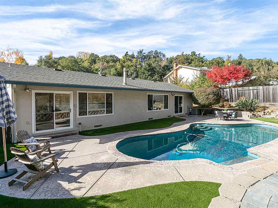 Fabulous single story situated in a highly desirable neighborhood in Castro Valley just off Crow Canyon, sits a remodeled gem ready to move right in. This spacious open floor plan has it all: 4 bedrooms, 2 baths, 1669 square feet, and is set on a beautiful private and serene .24 acre lot. Some of the features that highlight this spectacular home: Hardwood flooring, remodeled chef's kitchen w/granite countertops, large center island, new stainless LG refrigerator, recessed lighting, new interior paint, dual pane windows, newer AC, pool, spa with pergola, new pool pump, nest thermostat & doorbell, electric car charger, new concrete paver deck, outdoor speakers, & turf in rear yard. Relish in the private backyard oasis perfect for relaxing by the pool or spa after a long day of "zooms" or remote learning. Don't miss this opportunity to own in a sought after community w/top rated schools, parks & walking trails, restaurants, shopping, & easy access to all commute routes. Don't miss!