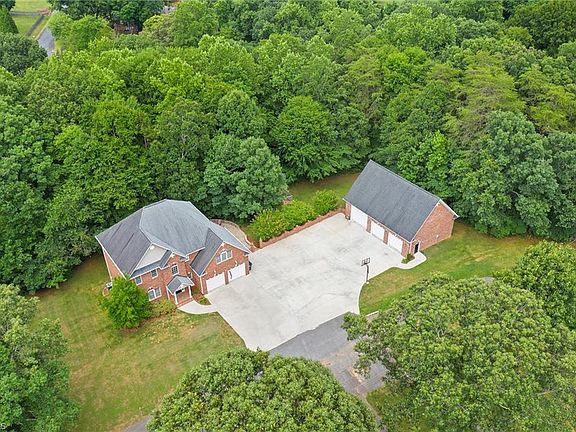 All the room you could ask for in this timeless 4 bedroom, 3.5 bath home in Pfafftown sitting on 2.91 acres. Fantastic location offering a beautiful setting from your custom stoned patio area to your back deck and spacious paved parking area w/ a 2 car attached garage and additional detached 3 car garage with bonus workshop/storage area. Enter into a grand staircase with gorgeous hardwoods throughout, traditional dining upon the entry leads to a lovely kitchen w/ SS appliances and a perfect entertaining space with the granite peninsula w/ overhang for bar stools, breakfast area opening into the living room which offers gas logs and many windows pouring in natural light. Generous primary suite w/ walk-in closet, updated dbl vanity sinks, & jetted tub, all spacious bedrooms throughout and a wired/plumbed unfinished basement ready to create your own bonus or rec room, the possibilities are endless! Make this house your home today!