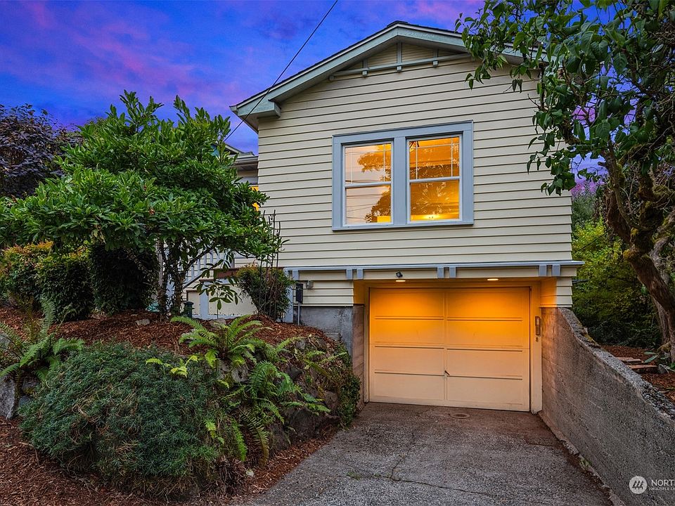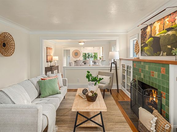 Step into this charming craftsman where classic elegance meets modern comfort. A Tiffany-style chandelier greets you in the living room with a hand-tiled fireplace, rich hardwoods, and coved ceilings. The remodeled kitchen with a breakfast nook and eating bar is perfect for entertaining. The main level has two bedrooms and an updated bath, while the finished lower level offers a cozy family room, two more bedrooms, a 3/4 bath, laundry, storage, and a one-car garage. Located just steps from Greenlake's coffee shops, restaurants, and parks, this home blends seclusion with urban convenience.