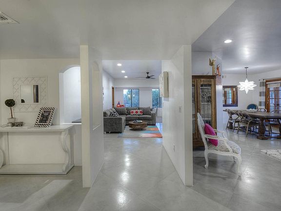 Shadow Hills 2004 sq ft home. Colored concrete floors throughout. Bright and open floor plan w/tons of windows. Living room & dining room plus Separate family room, corner fireplace, open to renovated eat-in kitchen with tons of cabinetry for ample storage. Granite counter tops, stainless steel appliances plus a breakfast bar! Large Master suite includes a large, walk-in closet, dual sinks w/granite counters & mosaic tile accents. Back yard has a covered patio & deck off the separately fenced pool. Tons of desert vegetation, mountain views and privacy. 2 car garage on a culdesac lot with tons of off street parking.