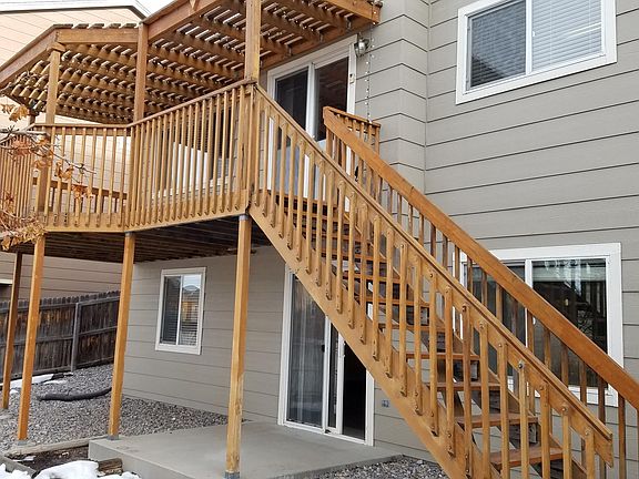 Charming two-story home that sits comfortably in a very popular Saddle Rock Ridge neighborhood. 3 bedrooms and 2 baths upstairs with the master having its own bathroom. An additional bedroom and full bathroom is in the basement. Kitchen features hardwood floors, granite counters, and stainless steel appliances with a newer gas range. Walkout basement is finished with room for game tables! A beautiful Redwood deck overlooks the nice fenced backyard. All of this situated in a convenient, friendly neighborhood with outstanding Cherry Creek Schools and only minutes away from Southlands Shopping Center. Owner pays HOA fees and trash. Tenant pays for all other utilities (gas, electric, water, internet, tv)