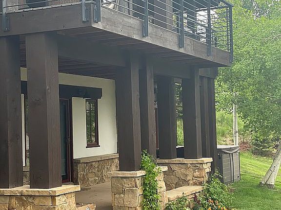 Custom built home w/panoramic views. Studio lock off w/separate entry. Great room w/vaulted wood ceilings, hickory floors and gas fireplace offers easy access to the kitchen, dining area, patio & deck. Kitchen has high-end appliances & butcher block island. Master bdrm has vaulted ceilings, gas fireplace & private deck. 2 bdrms & a family room on lower level w/patios that lead to the hot tub. The attention to detail is first-rate. Knotty alder trim & doors and walk-in closets w/custom built-ins.