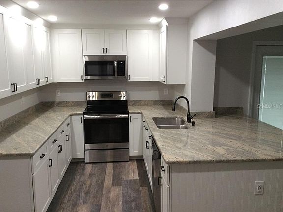 City of New Port Richey. Completely remodeled 3 bedroom with bonus room and/or 4th bedroom and 2 bathrooms. Great Layout with very spacious rooms. Updates include: Roof 2019, ac unit(2) 2019, electrical 2019, kitchen(wood cabinets, upper level granite and stainless appliances) 2019, bathrooms 2019, flooring throughout 2019, interior/exterior paint 2019, soffit/fascia 2019, vinyl fence 2019 and most windows have been updated. No flood insurance required. Large lot with alley access. Plenty of room for a pool and place to a boat. Nice storage building as well.. Seller has never occupied the home, no seller disclosure available. Listing agent has personal interest in the property. Home is in great condition but being sold in "as-is" condition for seller convenience. Buyer to verify all room measurements.