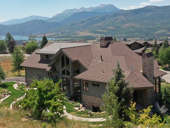 Experience breathtaking lake and mountain views from this custom-built 4,452 sq ft luxury retreat in The Highlands at Wolf Creek. Only a few residences in The Highlands can boast about the unparalleled views from every room in this custom residence build with superior craftmanship by Buxton Builders in 2007. Our stunning listing features soaring ceilings and arches, custom Pela windows throughout and every door is stunning custom Alder wood with solid wood trim and custom arches. Enjoy a Modern styled wrap-around covered deck for summer and winter enjoyment Picture yourself savoring sunset views from the deck after a day boating on Pineview or unwinding by the outdoor fireplace and cookery after carving fresh powder at Snowbasin or Powder Mountain. Views of Snowbasin, Nordic Valley, Pineview, Ben Lomond Peak of the Wasatch Back, and the Ogden Valley.The open-concept living, dining, and gourmet kitchen is welcoming with its cathedral ceilings, a custom hand-blown glass chandelier, a dramatic floor-to-ceiling stone fireplace, custom Alder wood cabinetry, granite countertops, and Wolf appliances. The main-level primary suite features its own stone fireplace, spa-inspired bath with soaking tub, and a sauna. Upstairs, you'll find a second en-suite primary, plus a private study with custom floor-to-ceiling cabinetry. Luxury finishes include walnut floors, handmade 10-foot doors, and custom lighting throughout. The lower level offers two additional bedrooms, a large 3/4 bathroom, a theater room with velvet curtains and leather seating, new HD projector, Sonos surround sound, and a cozy fireplace-plus space for a pool table or game area. The radiant heat flooring keeps it warm in the winter and even without air conditioning, the lower-level stays cool during the summer months. Enjoy year-round outdoor living on the expansive patio with built-in grill, stone fireplace, and private hot tub. A heated 3-car garage with storage, meticulously landscaped .88-acre lot, pre-listing inspection, and option to purchase two additional lots make this an exceptional mountain home.
