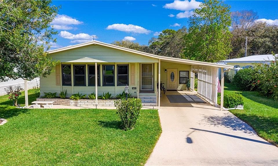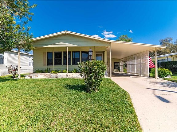 Looking for a pet friendly Florida neighborhood? Come enjoy the sunshine! Exceptional double wide home in Betmar Acres 55+ community where you own your land! Located in a desirable PET FRIENDLY Section of the park close to heart of community with a low HOA fee of $310/year. This 2br/2ba/FL room with /double carport with 1,423sq/ft shows off laminate flooring throughout, granite counter tops in kitchen, high ceilings, open concept, updated kitchen cabinets, breakfast bar in kitchen, and so much MORE! The roof was updated in 2021, double pane thermal windows, newer AC/Heating system, gorgeous backyard covered patio, covered golf cart parking area, workshop and Florida room. Kitchen updates include: flooring, sink, granite counter, cabinets, and appliances. The large drywalled Florida room is heated and cooled on central system with laminate flooring. The dining room has built-in shelves and is open to the living room area. Outside you have covered parking for your golf cart, workshop area, and back yard patio area. Beautiful design upgrades showcase a desirable OPEN FLOOR PLAN that flows perfectly throughout. The master bedroom retreat is located at the back of the home, walk-in closet, built-in shelves, nicely painted, laminate, and multi-room master bathroom has double sink with step-in shower. The second bedroom is bright and offers ample closet space with updated built-in shelves. Truly an oasis! Don't forget it's near the 27 holes of golf, 2 swimming pools and hot tubs along with 3 clubhouses a library, walking paths, Game rooms (Billiards, Table Tennis, Board Games) miniature golf, enclosed shuffleboard Courts, Tennis courts, pickle ball courts, basketball court, Bocce courts and Bingo and our NEW dog park. Call for an appointment. Per Sellers discretion, home is not for sale with CO-OP's or LLC's. Call today before it is gone!