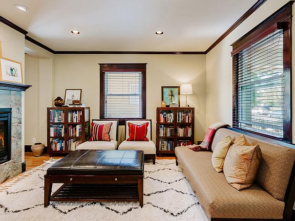 This renovated, 4-bedroom bungalow is tucked right off the charming main street in Old Town Littleton. The meticulously maintained abode holds on to its Craftsman original details infused w/ a renovation that incorporated open concept living, a revamped kitchen + indoor-outdoor flow. Downstairs holds a 4th bedroom + ¾ bathroom, while the spacious main level includes the master suite, 2 additional bedrooms + a sunroom. The living room, situated in the front, shares a double-sided gas fireplace w/ the dining room which encourages a natural flow in the open floorplan. A spacious kitchen is at the heart of the reimagined space w/ a range hood + exposed brick accents. Neutral tones from the stone countertops + tile visually complement dark wood cabinetry and stainless steel appliances. High ceilings, natural light + a sitting nook set the relaxed mood of the main level master suite. This bungalow boasts 2 covered outdoor patios to amplify indoor-outdoor connectivity.