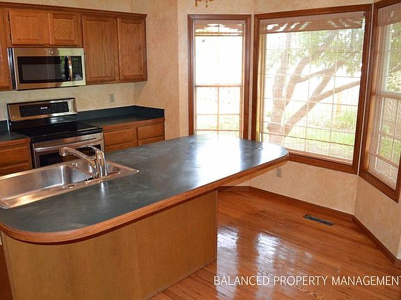 - 2000 + sq. ft. of professionally decorated living space - 3 bedroom + office - Roomy master suite with a dressing area and walk-in closet - Two comfy, good sized guest bedrooms with closet - 2 1/2 baths - Tiled main entry - Tiled hearth, wood burning fireplace - Light-filled and airy living room with vaulted ceilings and a dramatic balcony - Kitchen with bay window, breakfast bar, island sink and dishwasher and hardwood oak floors - Kitchen appliances included, except refrigerator. Includes stove, dishwasher, garbage disposal, build-in microwave and small refrigerator in basement. - Formal dining room - basement recreation room with wet bar, mini-fridge and handy bar seating areas. - Cozy private office - Separate and enclosed basement storage area. - 2+ car oversized garage. - Mature shade trees and shrubs providing a comfortably shady backyard and patio. - Charming stone walled front planting garden. - Curb appeal - The view from the front porch -- a quiet cul-de-sac of friendly neighbors. - Washburn Rural District School. - Great southwest location - Affordable utilities. Tenant pay utilities. - One month security deposit. - No smoking. - Plenty of shopping, restaurants and entertainment close by. 2 minutes to Wanamaker Av. - Small pets OK with additional deposit. Breed restrictions apply. PLEASE SERIOUS INQUIRIES ONLY. CRIMINAL BACKGROUND AND PAST RENTAL HISTORY WILL BE SCREENED. APPLICATION $35 PER PERSON $45 MARRIED COUPLES Please include a good phone number to contact you at in your email. Thank you! No smoking allowed