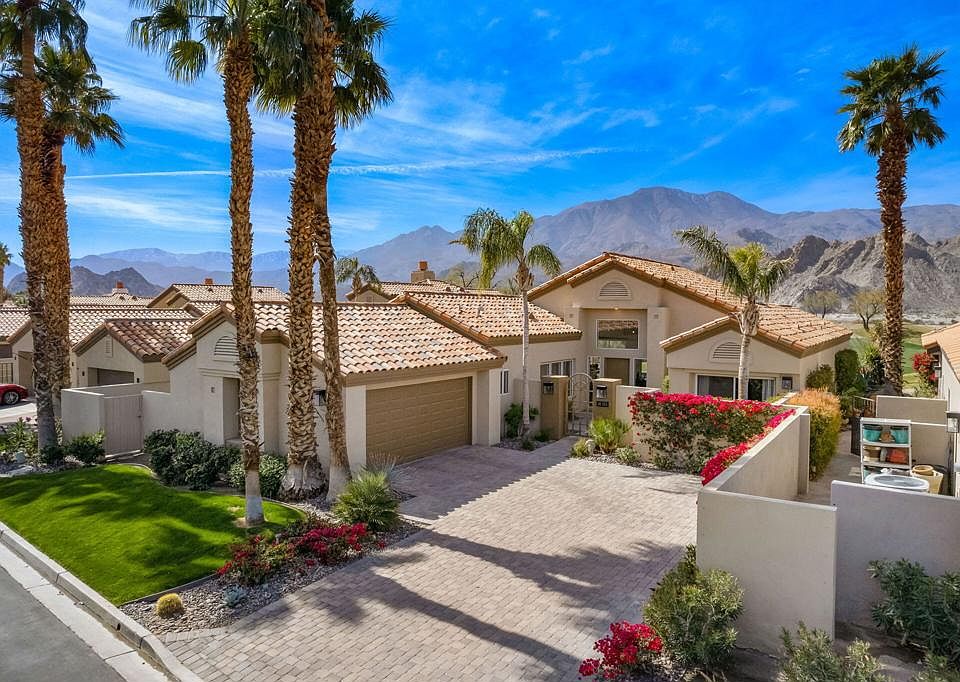 Welcome to this beautiful remodeled 3 bedroom, 3.5 bath located in the desirable PGA West community. One of the most desirable floor plans with amazing views of the western mountains, lush fairway and green of the 4th hole of the Nicklaus Private Golf Course. Upon entering the home, you are greeted by an open concept living room, dining area, kitchen and family room. The kitchen features dark cabinets, light quartz countertops and upgraded stainless steel appliances. The master suite is a relaxing retreat, featuring a walk in closet, dual sinks, a soaking tub and separate shower. The two additional bedrooms also offer their own private en-suite bathrooms.