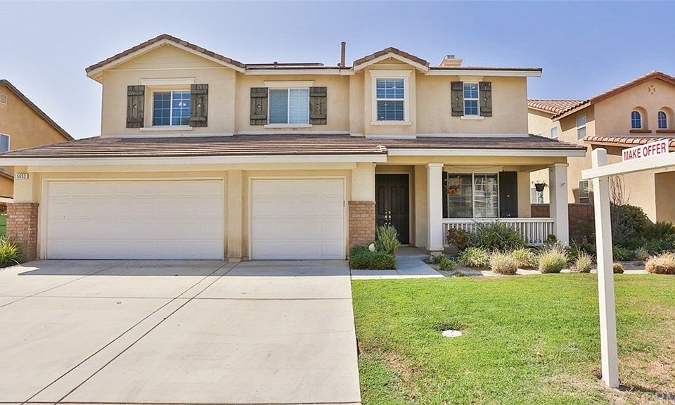 YOUR BEST MOVE starts in this lovely two story home located in the highly sought after area of Eastvale, just minutes away from shopping, award winning schools, and freeways! Main floor has one bedroom and bathroom, laundry room, kitchen with granite counter tops and backsplash that opens to the family room, a formal living and dining room. Upstairs you'll find the large master suite that contains the connected master bath, a sitting area, fireplace, and deck. There's also an additional three bedrooms, two bathrooms, and a very large loft area. Split staircase with beautiful rod iron accents provides access to both the kitchen and main entryway. Solar for energy efficient electricity. This one won't last!!