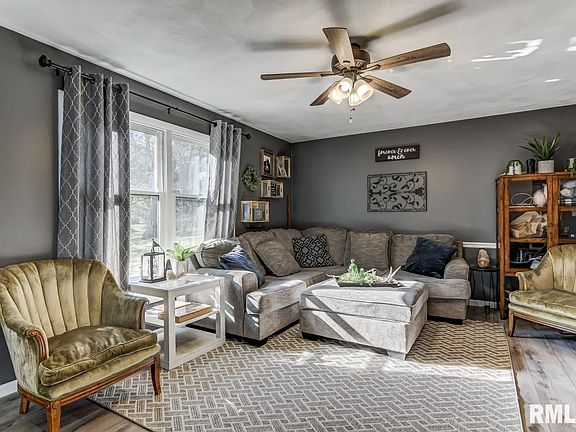 Charming two bedroom home privately located on 2.78 acres, just minutes from The Oaks Golf Course and Dirksen Parkway.This completely renovated home has an open kitchen/living space with all newer black SS appliances, granite counter tops and oak cabinets. Energy efficient Nest thermostat. All new light fixtures. New luxury vinyl plank flooring and carpeting throughout home. Unfinished basement with potential for additional living space. Just off the kitchen is a deck which leads to a backyard with mature raspberry patch, pear tree and garden. Shed stays. Roof - 6 yrs., HVAC - 7 trs. and water heater 8 yrs. Must see!!