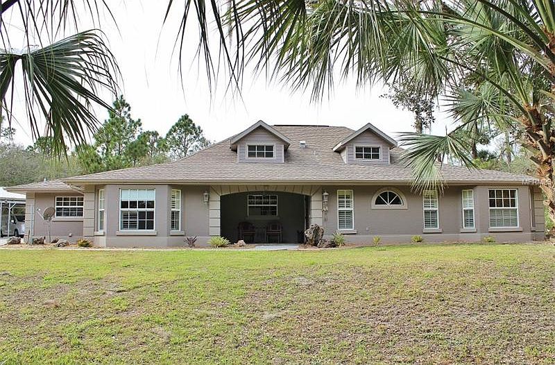 Gorgeous 3BD, 2BA Pool home on 4.47 Acres! Exterior Features include LARGE DETACHED WORKSHOP. First Floor is 1,200 Sq. Ft. and 2nd Floor is 1,000 Sq. Ft. & HAS a 9,000 lb. LIFT!!! Wrap around Driveway, 2 access Driveways for larger vehicles, 2 Car Carport, Beautiful Landscaping, Fenced Yard, Swimming Pool w/Stunning Pine Bar, Fire-Pit and so much more! Interior features include Open Floor plan, Crown Molding, Tray Ceilings, Kitchen-Dining-Living room combo, Florida room has an additional room that could be used as a 4th bedroom. Den has French doors & could be used as a possible 5th bedroom. Master bedroom has 2 Walk-In closets. Large Breakfast Bar, Stainless Steel Appliances, Gas Stove, PGT Hurricane rated Windows, Under Cabinet plugs for lighting & Built-In features throughout. This home has two Master Bedrooms due to both having Walk-In Closets and Bathrooms! Second master bathroom can be accessed from pool area. Coming with a 1 year Home Warranty!!!