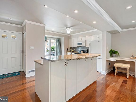 Quiet, tucked away neighborhood located within minutes of all the conveniences of city living! Less than 5 miles to Old Town Alexandria, Kingstowne Towne Center as well as multiple metro stops! Beautiful brick front home that backs to trees and features a quiet outdoor oasis in the back, perfect for escaping the hustle and bustle of everyday life. With gleaming wood floors, updated kitchen counters with white cabinets, and TONS of natural light, this home has it all! Three light filled & spacious bedrooms with two full baths upstairs. Basement features a huge rec room, BRAND NEW CARPET, built in desk/bar, a beautifully updated full bath and tons of storage! One year old HVAC! One assigned parking space with plenty of guest parking. Beautifully updated home in a prime location, a MUST SEE!