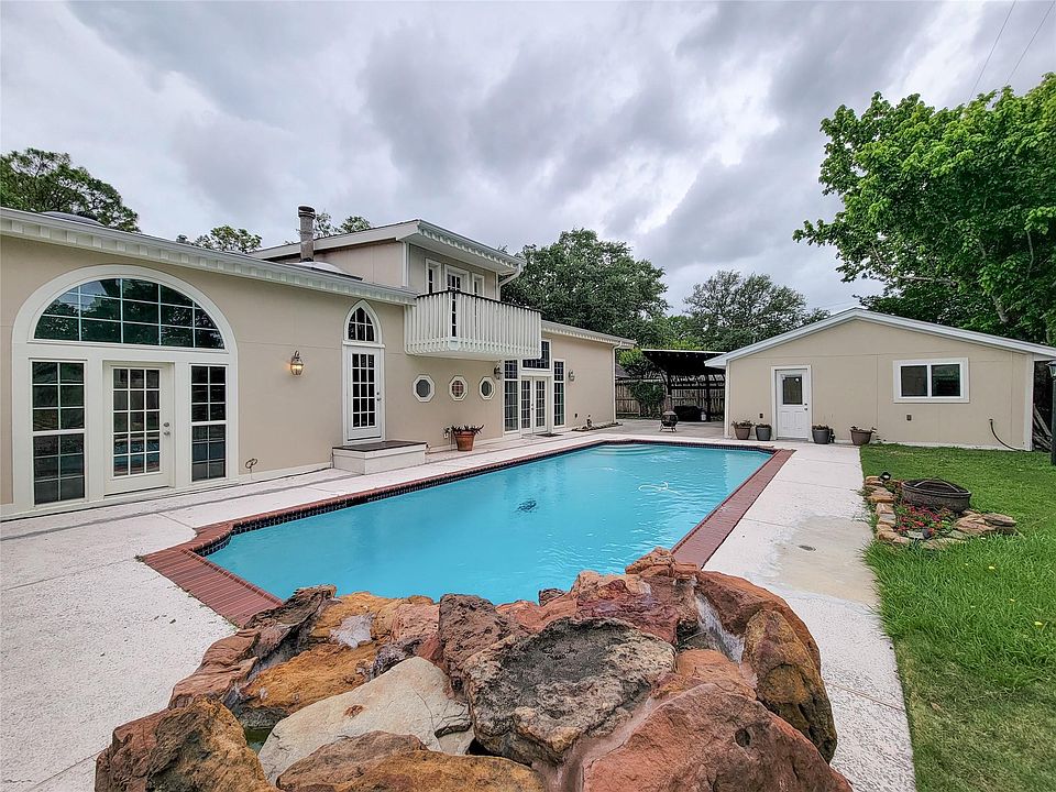 The PICTURES really do tell the story! You won't find this kind of quality sqft for the price anywhere in the Meyerland area! Multi-generational family? Entertaining? Top quality living? Whatever your needs, this incredible one of a kind property has it all! Interior offers open floor plan, tons of natural light, dream kitchen with serving bar, 9 bedrooms (great flex room options for office, yoga, media, library, studio, etc.), 4.5 baths and escape spa room for those instant "vacations." Enjoy the evenings with an ultra-sleek electric fireplace with mood matching flame color choices. The grounds feature a casita/cabana/guest house, call it what you will...it has a full kitchen, full bath, large living area and recent appliances, cabinets, countertops, tile, flooring...it's all there for your finishing desires. Adding to the ultimate living experience is a "real sized" low maintenance, energy efficient saltwater pool. Spacious turf and patio areas are overlooked by sunning balcony.