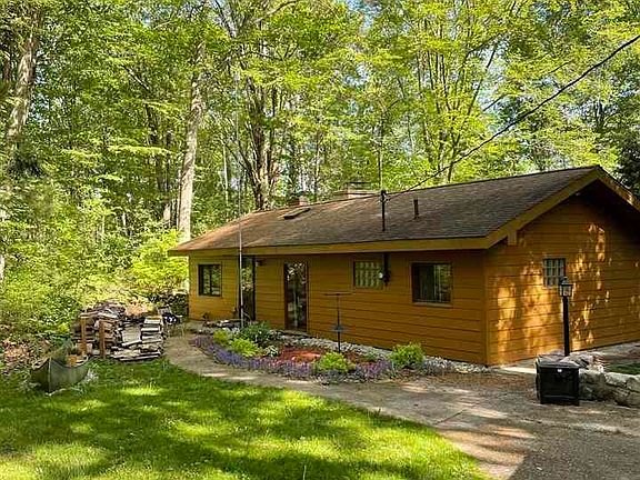 Bring your fly-rod and enjoy catching a Brook or hefty Brown trout along your private 108' of Big Sable River frontage or soak in natures wonder and lose yourself anywhere on your private 3.32 acre refuge. Only 15 miles East of Ludington and seven miles from Orchard Market off the beaten path is your very own well-cared for abode with a large detached garage w/ plumbing, wood burner and work bench. The original build has beam ceilings which adds character to the knotty pine, rustic interior decor accented by a natural fireplace for that nostalgic feel. A recreationist's dream come true!