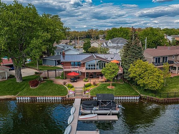 Prime Waterfront Home with Panoramic View of Lake Cable! All brick raised ranch has had extensive remodeling over approx 13 years with quality workmanship 2 OR (3 bedrooms possible),4 bathrooms and sun room addition. Newer custom kitchen with maple cabinets, breakfast bar, granite countertops, tile backsplash, high-end appliances, skylights and beautiful wood flooring throughout! Living room includes custom built in bookcases surrounding a gorgeous fireplace with beautiful mantel and gas logs. Open floor plan with dining room area centered between kitchen, living room and access to the sun room with cathedral ceiling, abundance of windows and a Million Dollar View! Remodeled master suite with updated full bath, granite counters and walk-in closet. The second bedroom is currently used as an office w/ built-ins & half bath. Walk-out lower level offers multi-use with L-shaped rec-room, gas fireplace, mini-kitchen/wet bar, full bath, plenty of storage and a 3rd guest room area with custom built-in Murphy bed surrounded in a gorgeous maple wood bookcase. UPDATES; Metal roof, SeaWall, multi-slip large boat dock with Boat LIFT (all maintenance free decking), garage w/nature stone floor, washer/dryer, newer windows, custom window treatments, two decks (one w/access to yard ), newer paver patio & driveway pad for extra parking, interior/ext doors, generator, kitchen & baths, floors, landscape and more! All this...in the heart of Lake Cable...Location Location!