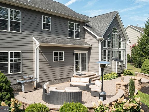 Located in desirable Estates at Timberly Farm, this updated home offers a total of 4,476sf of finished living space. Light-filled with numerous large windows and 9’ ceilings, the main floor is bright and airy with an open plan ideal for entertaining with flair. New recessed LED and high-end light fixtures convey a sense of modern style. Plantation shutters add sophisticated window treatment in many rooms. The welcoming 2-story foyer has a luxurious chandelier and turned staircase and Brazilian cherry floor, which covers much of the main floor. The living and dining rooms flow nicely together, each offering beautiful crown molding and wainscoting. Off the foyer is an office with bay window, and a powder room. The recently updated kitchen with breakfast area is stunning with white soft-close cabinets, white quartz counters, brushed brass fixtures and hardware, contemporary light fixtures and recessed LED lights, a custom hood, and newer appliances, including a microwave drawer and double wall ovens. Plenty of storage in the step-in pantry, and the mud room and laundry with wainscoting, sink and cabinets are nearby. Open to the kitchen is the large family room with vaulted ceiling, 2023 carpet, gas fireplace with marble surround, back staircase and a wall of windows, all centered around a gorgeous chandelier. Step out the glass slider to the 600+sf paver terrace and enjoy the beautifully landscaped grounds. Designed as a retreat, the main bedroom is roomy with high ceilings and a bright sitting room. The tiled en suite offers double vanity, stall shower and soaking tub, and a water closet. WIC with window is quite large. Three additional bedrooms and a tiled hall bath with double vanity and tub shower complete the second floor. All bedrooms have ceiling fans with lighting. Perfectly complimenting the upstairs floors is the finished lower level offering approx. 1,200sf of entertaining space with LVP flooring, stone feature wall, wet bar with beverage frig, rec room, playroom, powder room, and a home theater complete with leather recliners and 90” Aquos Quattron 3D TV plus surround sound. A fun escape for all! House systems include 2024 Bryant furnace, 2018 Trane AC, automatic generator, hard-wired alarm (not in use), 2018 Hardie Plank siding, public sewer, radon remediation, and 2-zone underground electric dog fence. Walking trails are close-by. Central Bucks Blue Ribbon School District.