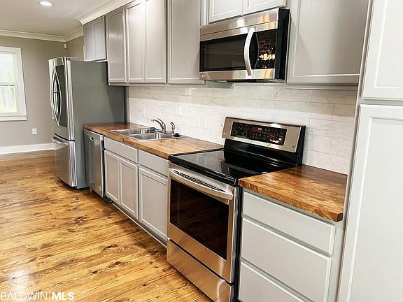 The Shrimp Boats are calling your name!!! Oak trees covered with Spanish Moss. Welcome to historic Bon Secour. This wonderful brick home has been completely renovated both inside and out with no detail overlooked. Check out this list of upgrades! New metal roof, new windows, all new plumbing, all new electrical, new light fixtures, new shutters, spray foam insulation in the attic, Open floor plan. New stainless appliances, new fans, new toilets, all new flooring, fresh paint inside and out, seeded grass lawn, smooth ceilings, well water new cabinetry in kitchen, brand new bathrooms, New HVAC ductwork, new LED lights, amazing hardwood floors..........all on nearly a 1/2 acre lot! Walk to the shrimp boats and get your fresh catch or visit the Tin Top for dinner! Swift school is only a bike ride away.
