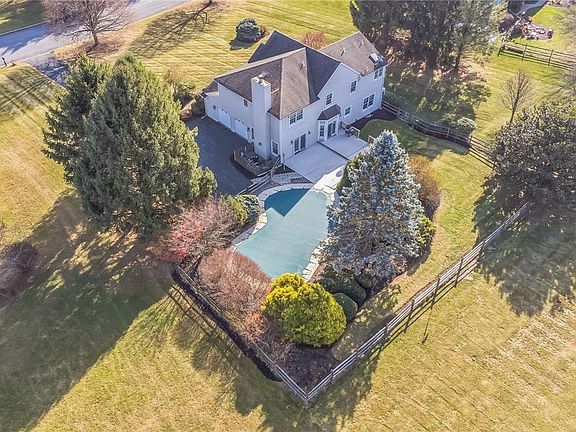 Located in the picturesque Hills Of Powder Valley you'll find this estate property positioned on 1.69 acres and comprised of a custom home of 2,676 sq/ft, an Anthony Sylvan in-ground pool, fenced yard and well selected mature landscaping. Stepping inside the 2 story foyer you'll immediately recognize the custom design of the home. A 2 story vaulted ceiling living room and 2nd floor open office frame the foyer and make for a unique and elegant welcome. Beyond is a spacious and bright kitchen that offers a granite top center island w/ cook top & sink, plenty of counter & cabinet space, breakfast room and a step down to the sunken living room w/ propane fireplace. Access to the fenced yard, large composite deck & pool deck are accessible via doors from the breakfast rm. A large formal dining room, powder room & oversized attached 2 car garage w/ work nook completes the 1st floor. Upstairs boasts an office (or easy conversion to 4th bedroom), 3 bedrooms, 2 baths and laundry room. Master suite incorporates double door entry, deep walk in closet w/ organizers & a sprawling private bath w/ soaking tub, stall shower & skylight. Spacious 2nd & 3rd bedroom, hall bathroom & conveniently positioned 2nd floor laundry round off the 2nd floor. The basement provides an abundance of storage space w/ custom built wood shelving. Make note- HVAC system replaced in 2023. Hardwired alarm system. All systems and utilities diligently serviced regularly. Located within the East Penn School District.