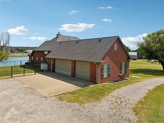 RARE OPPORTUNITY TO OWN THIS MOUNDS TWIN LAKES FRONTAGE! A hidden gem located 35 minutes from downtown Tulsa. Only a handful of homes circle this gorgeous blue twin ski lakes southwest of Mounds. If you are looking for a waterfront sanctuary, then you are in luck. With the water views wrapping around 2 sides of the home, you'll enjoy water views from the primary bedroom, living room, 2nd living/office, & kitchen. A 13x29 covered cedar patio also has stunning water views and just 60' from water's edge! The home sits on 1.1 +/- acre w/ mature trees, dog run, & 3 car garage w/ utility sink & safe room. The home features 12' entry & dining ceilings, 3 bedrooms, 2.5 bathrooms, 2 living areas, granite island kitchen w/ pantry, SS appliances, & large walk-in closet for primary bedroom. The patio is wired for a hot tub, new roof in 2017, tankless hot water, 3 exterior faucets, & full brick, The HOA amenities include stocked pond, twin ski lakes, boat dock, & boat ramp. Bring your boat, jet skis, paddleboard, kayak and soak up this unique water & nature opportunity!
