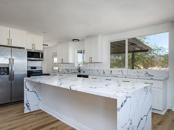 Welcome to this fully updated 3 bedroom 2 bath home. This unique home in Johnson Valley has been renovated from top to bottom with a brand new open concept kitchen and living area (New vinyl plank flooring has been installed). All new Kitchen with Shaker Style Cabinets, Quartz counter-tops, large waterfall island, stainless steel appliances, dual pane windows, mini splits, new recessed lights, updated bathrooms, concrete flooring and trendy finishes. Located on five acres with incredible mountain views! If you are into off-road activities, this is located just minutes from the Johnson Valley OHV recreation area, close to King of Hammers, Joshua Tree National Park, and Big Bear. Adjacent to the main house is a detached casita, perfect for an office, playroom, storage, or whatever your heart desires.