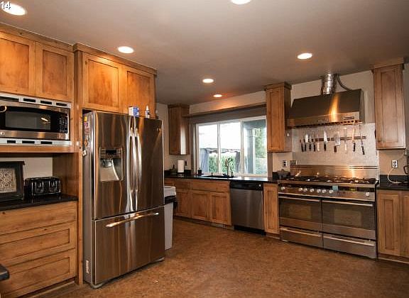 Willamette River frontage. Enjoy river views from inside&outside from your covered patio with gas hook-up. Complete remodel about 3 years ago makes this vintage home seem like new. Large kitchen with numerous quality appliances & pantry. Large living room with gas fireplace insert,entry with exposed stair case, a large master bedroom with 2 reading alcoves&deluxe master bath. Finished basement with bath&pellet insert. Detached workshop
