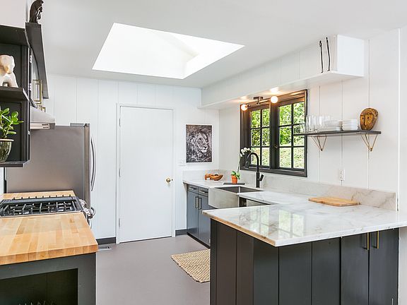 This happy & bright Vermont Hills mid-century sits on a large corner lot with mature Redwood and fir trees. This little jewel box has it all - large picture window, cozy fireplace, and original hardwoods. The stunningly remodeled kitchen boasts marble & butcher-block countertops, skylight, and high-end stainless steel appliances. Other updates include new water line & plumbing, gas furnace, and Nest thermostat. This is the one!