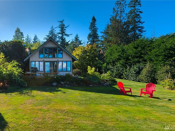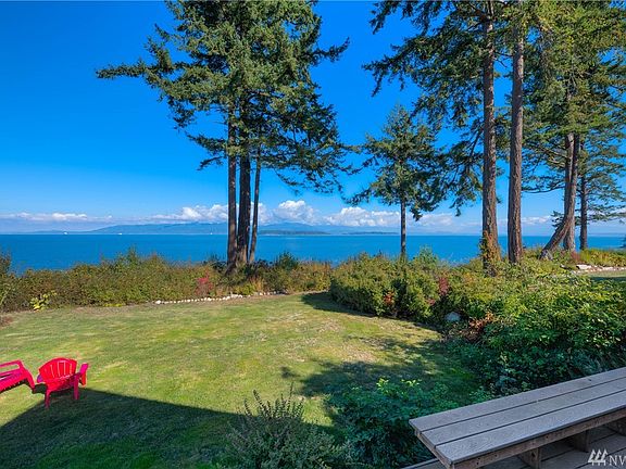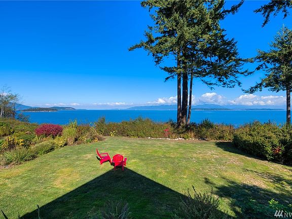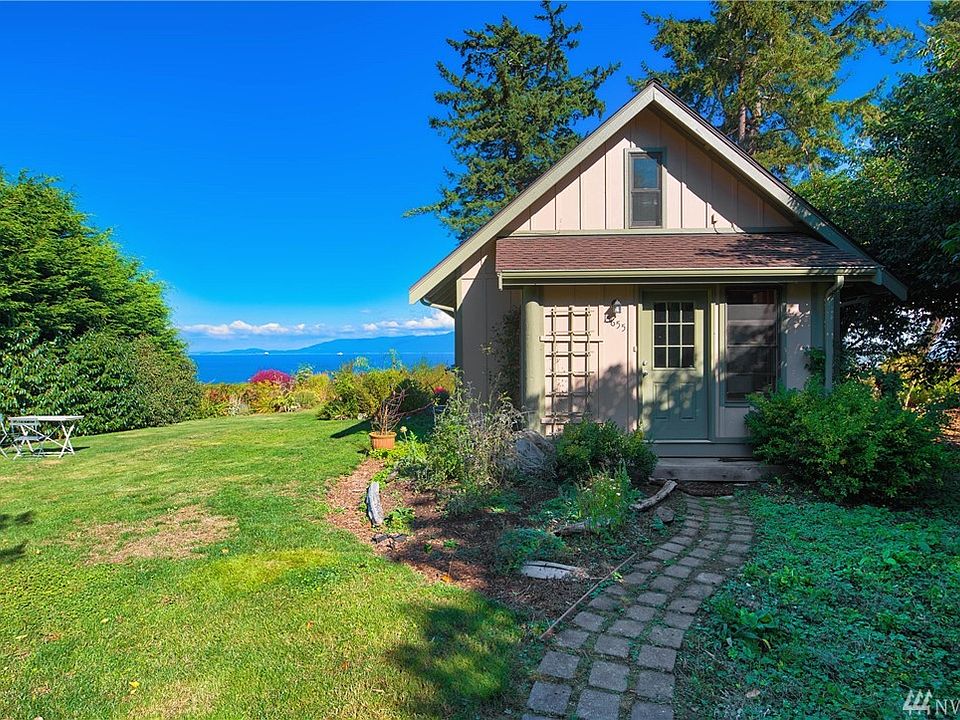 Stunning 180-degree views of the Cascades, Mt. Baker, B.C. Coastal Range & many islands from this gorgeous property w/two buildings on a sleepy lane on Guemes Island. Waterside cottage has one bed/1 bath; newer garage/shop has brand-new upstairs view studio w/kitchen & bath. On .72 acres, this high bank waterfront property has amazing flower gardens & hedge rows for privacy. Stair easement next door leads to a beautiful beach. Use your imagination to create your island dream; a blank slate.