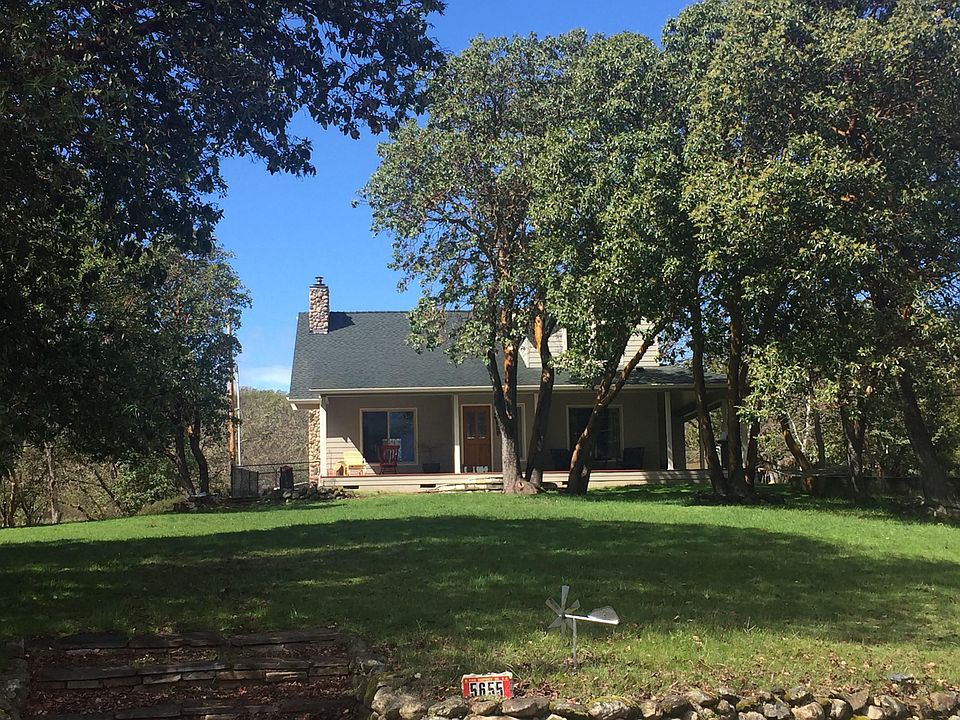 Luxury Cabin on the Hill - Set back on 16.81 acres is a custom built home high on a hill with unparalleled vistas of Table Rock, Mt. McLoughlin & Mt. Ashland from a large, wrap-around covered porch. Serene & private setting to take full advantage of wide vistas & hunting of deer and wild turkey, PLUS an old gold mine from the 1800's adds to the charm of this unique property. Cozy stone wood-burning fireplace, hardwood floors & large windows to let the natural light pour in. Granite counter tops, breakfast bar, and smooth cook top. Darling detached bonus room is very versatile and can be used as office, studio or exercise room. Spacious loft makes a perfect reading nook or office with built in bookshelves. Vaulted ceilings in master with walk in closet and double sink vanity in bathroom. Very unique 2-car garage that can be opened on 3 sides to create a breezeway. Detached shop & additional extra room that can be used as office or storage. Large dog run for your furry friends.