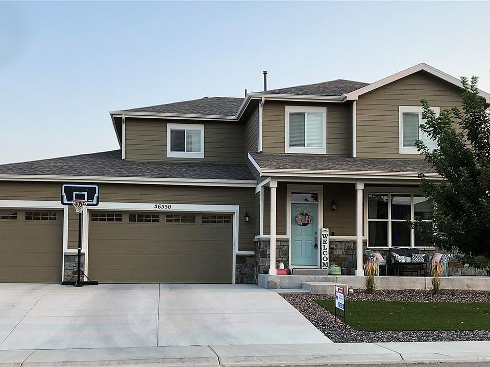 Beautiful 2-story home in the Blackstone Ranch subdivision. Just around the corner is a beautiful park with a playground. In the evenings you will find friendly people shooting hoops or playing ball on the courts and diamonds across from the school situated just a few hundred yards away. Inside the house you will find that the home is spacious yet manageable. The 4 bedrooms include a huge primary suite with a large walk-in closet and 5 piece bathroom. The 3 secondary bedrooms are lovely and large. You wont bump into each other in the secondary bathroom either with plenty of floor space, a double-sink vanity, tub/shower and a great linen closet. The kitchen has ample storage and prep space with stainless appliances that are in great condition. An unfinished basement with 9 foot ceilings is stubbed for a bathroom and ready for your customization. The garage on this house is incredible. Lots of room for all the toys. Turf in the front and back yard is water wise, attractive and easy to maintain. This home is situated just a 30 minute drive from DIA and 40 minutes from Downtown Denver. This home has been loved and it shows.