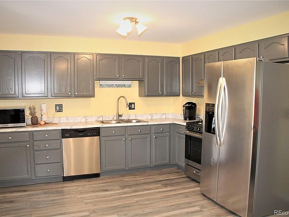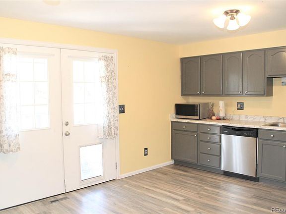 Welcome to your new home. Walk in to your beautiful home - upstairs is the Living room, Dining area and Kitchen with newer flooring, Kitchen has stainless steel appliances, beautiful gray cabinets . You can walk out to your covered deck through French doors. Your back yard has cement area for grilling, a shed for storage, Chicken coop or make it into a play house. A Gazebo/ Trellis and a garden area to grow your own vegetables. Off road parking for a motor home or 5th wheel. or what ever toys you have. Back in the house you have on the main level a remodeled bathroom with beautiful tile shower with glass doors, new flooring, new vanity. 2 of our 4 bedrooms are on this level. Down stairs has a family room with a wood burning stove, 2 more bedrooms and another remodeled bathroom to match the one upstairs. Tiled shower and new flooring, new vanity. Come see this great home and live the life in a small town that is close to the big City. King Soopers near by, 35 miles to the Air port . Close to the new Space Port