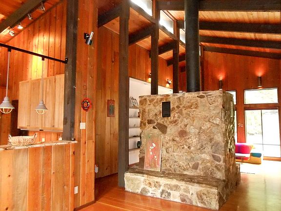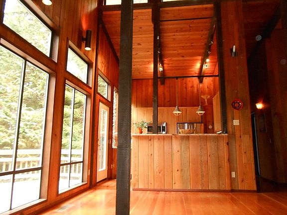Amazing mid-century modern chalet with two additional cabins on private, wooded, serene 5 Acres in Bandon. Main home boasts floor to ceiling stone fireplace, vaulted ceilings, tons of windows creating an ambient setting with natural light throughout this 2 bedroom (with bonus room), 2 full bathroom house. 2nd cabin has kitchen, bathroom, and loft. 3rd cabin w/all utilities as well. THIS IS THE HOME YOU'VE BEEN WAITING FOR! Private, yet close to State beaches, Old Town, Bandon Dunes Golf Resort