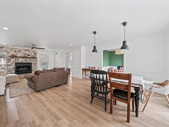 Wood burning fireplaceNice size storage buildingFridge staysEat-in kitchenNew tile in kitchenFormal dining room