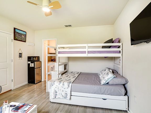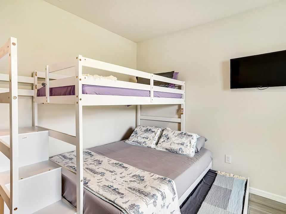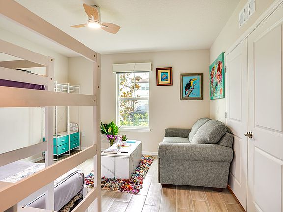 Beautiful Suite with queen bed and 2 singles, with sitting area, kitchenette and full bathroom in large waterfront home in South Lakeland. Near Lakeland Linder Airport (which now offers commercial passenger flights from Avelo Airlines) and all that South Lakeland has to offer. Near hospitals/clinics and sits between Tampa and Orlando. Great Central Florida location. Community offers pools, outdoor exercise equipment, walking and biking trails. Seperate entrance and totally private area inside home. All the comforts and convenience of being fully furnished and stocked for longer term stays. Minimum stays of 30 days with a maximum of 6 months (unless agreed to with owner). Owners live in other portion of home. Keyless entry on front entrance door and on suite door. Contract for term length and lease with background and credit check is necessary. All utilities included along with a large smart TV and high speed internet service. Washer/dryer in suite as well. Minimum of one month and maximum of 6 unless agreed to with owner. Tenant responsible for any movie or other rental from TV for programming. NO smoking permitted. Tenants can use one part of the driveway for a car/vehicle. Tenant must keep suite clean and trash free since it is within another home. Tenant responsible for any damage to suite, furniture or fixtures.