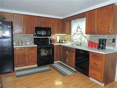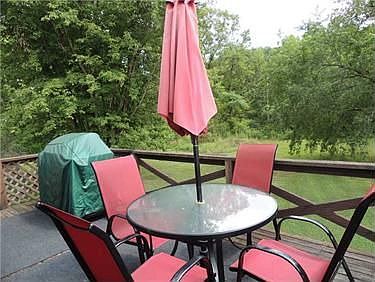 Attractive 2 BR, 1 BA, split entry home with a large 60' x30' 4 car detached garage Finished basement with a walk out to a covered patio Laminated wood floors and a ceramic floor in the entry make for easy cleaning Neutral decor Oak cabinets in kitchen Whirlpool tub in nice sized bath Woodburn in basement Exterior features a composition deck Spacious wooded lot Access to deck from dining room Deck faces private wooded lot Garage has 10' doors and 12'ceiling, lift, hand and air tools