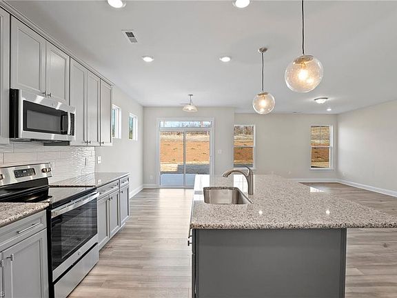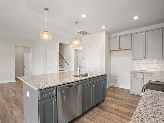 Eastwood's popular Raleigh floor plan is a spacious four bedroom home with three and a half baths. The main level primary suite affords comfort and privacy while entertaining is a breeze with a formal dining room, kitchen island and open floor plan. Come see this upgraded home with granite countertops, tile backsplash, vinyl plank flooring, tray ceilings, smart home technology, and lots of windows to allow for an abundance of light. Ready now! Agents- See Agent Only Note for additional info