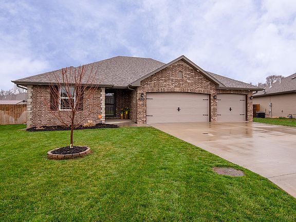 Back on market no fault of Sellers!!Don't miss your second chance to make this beauty yours. Multiple offers first time around. Come see this gorgeous home with numerous upgrades in sought after Bent Tree subdivision. It is located in Republic school district & just over 3 years old. The full brick and stone front offers great curb appeal as you pull into the drive & the fully fenced yard has a sprinkler system to keep your lawn green & inviting. This home embodies open concept living at its best. The foyer opens to a beautiful open living area. The kitchen boasts dark stained cabinetry & granite counters as well as an oversized single stainless sink in the island and upgraded KitchenAid appliances which will please the pickiest of cooks. Off the kitchen is a large pantry and a mud room with a custom built in storage area & leads to the garage. The garage has plenty of added upgrades and makes a great mancave. There is beautiful wood flooring throughout the home and the two front spacious bedrooms & bathrooms, which are featured in a split bedroom layout, are just off the front foyer area. The master suite sits tucked on the other end of the home. The en suite bath has his and hers vanities, a walk in shower, (miniature urinal for making potty training a snap,) and a large walk in closet. The laundry room is also situated conveniently next to the master bedroom. Out in the backyard, you will be pleased with the large deck addition and extended concrete patio-Great for that summer bbq. The list goes on and on, so don't miss the list of upgrade at the end of the photos.Subdivision has community swimming pool, tennis courts, basketball area, and kids playground.