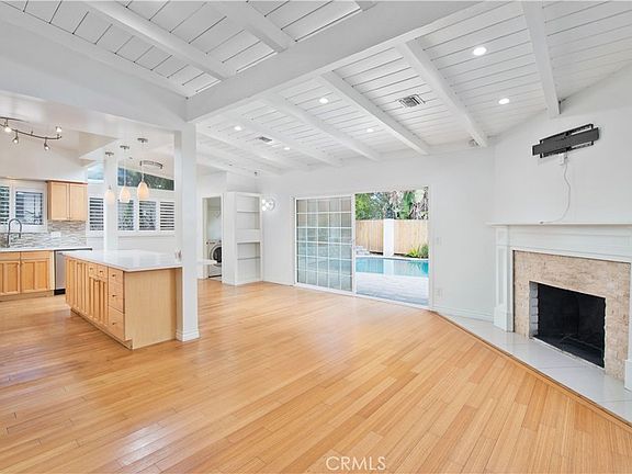 Welcome to this gated Encino Village single level residence, adorned with open living spaces, wood floors and vaulted wood beamed ceilings! Outfitted with its spacious cooks kitchen anchored by a grand center island breakfast bar, step in pantry, stainless appliances, quartz counters and loads of custom maple wood cabinetry. Opening from the kitchen is its great room styled living area with central stone inlaid fireplace and expansive sunlit dining area. Encompassing four spacious bedrooms that include its oversized primary suite with wall of closet space, built in entertainment niche and updated private bath with dual sink vanity and stunning seamless glass shower with luxurious marble tile. Step out and relax in the ultra-private rear yard with sparkling swimmers pool, loads of entertaining and lounging venues along with large side yard with extra storage space, all perfectly surrounded by its mature landscape and tall hedges creating a perfect and peaceful oasis! Don't miss this rare find within a premier Encino neighborhood, just a short stroll to Balboa Park and all the wonderful outdoor activities it has to offer!