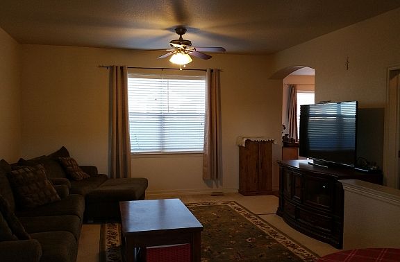 Great Ranch Home. Mountain Views. 4 Bed, 3 Bath, 3 Car Oversized Garage. 3594 total sq. ft. Finished basement. Kitchen w/ island, pantry, wood flr., granite, s.s. appl. included, tile back splash and recessed lights. Dining area w/ sliding door to patio. Large living room w/ ceiling fan and neutral paint. Master w/ walk in closet, ceiling fan, 5 piece bath w/ tile flr., shower surround and counters, soaking tub and his and her sink. 2 other good size bedrooms on main. Main bath w/ tile flr, shower surround and counters. Laundry on main. Basement w/ large open family room, 1 large bed room w/ walk in closet. Bath in bsmt tile flr., shower surround and counter. A/C. Oversized garage is insulated and s.r. Fenced yard w/ patio, sprinkler system. pro landscaping. Cul de sac. Close to park and school.