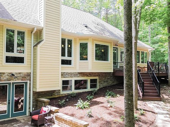Welcome to your dream retreat! This stunning custom-built home, crafted with exceptional attention to detail in 2015, is a one-owner masterpiece nestled on nearly 9 private acres. Located just a few miles from all amenities and the Indiana University Campus, this property offers the perfect blend of tranquility and convenience. Spanning 4,134 finished square feet with and additional 574 unfinished sf, this residence boasts luxurious features throughout. Step inside to discover the elegance of 3/4" solid walnut hardwood flooring and the brilliance of Pella windows that bathe the home in natural light. The heart of the home is the gourmet kitchen, featuring custom Amish soft-close cabinetry, exquisite granite countertops, and top-of-the-line appliances. The expansive main level includes a vaulted ceiling living area and a lavish primary bedroom suite, ensuring comfort and privacy. Relax and entertain in the large all-seasons room, offering panoramic views of the pristine wooded surroundings. The finished walk-out basement, with double opening doors, is a haven for recreation, complete with a high end soapstone wood-burning stove, a wet bar with a wine cooler, and ample space for gatherings. Outdoors, the Trex decking provides a maintenance-free space to soak in the beauty of the wooded acreage, featuring established walking trails perfect for nature enthusiasts. The 3-car garage offers plenty of storage and convenience. Experience sustainable living with the home's Geothermal heating system, ensuring energy efficiency year-round. Don’t miss this rare opportunity to own a piece of paradise near the vibrant IU Campus. Envision the lifestyle that awaits you in this extraordinary once in a lifetime property.