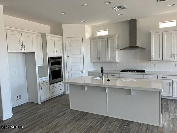 MAY MOVE IN!!! Beautiful completed home in this brand-new gated community, RESERVE AT RED ROCK in foothills of NE Mesa has just under 50% open space. Popular open floor plan has dramatic iron entry door, plus loads of upgrades including gourmet kitchen w/upgraded Kitchenaid 36'' gas package, Regal White cabinets & upgraded Quartz counter tops, Kohler apron front sink, enlarged great room, modern rectangular sinks with framed mirrors in all bathrooms, laundry cabinets, 8' interior doors, large baseboards, tile planking thru-out & much more. All homes have paver driveways & walks and front porches. Community amenities include clubhouse w/ heated pool & spa, gym, pickleball, half-court basketball, hiking trails, tot areas & more.