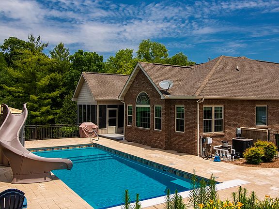 This one level brick home features vaulted ceilings; split bedroom floor plan, hardwood floors, & Corian counter tops. The sellers have made lots of improvements including triple pane windows, new irrigation system, & in ground pool to name a few. This heated salt water pool features a retractable & sturdy liner that helps keep area safe & clean when not in use. The pool is 6 1/2 ft deep & features sliding board, tanning ledge, & exit ramps in deep end. Surround sound speaker system w/ 6 disk cd changer reaches every room of the house & extends onto the screened in porch. The screened porch overlooks the oasis backyard & offers sun filtering shades & a built in swing. The spacious 3 car garage offers built- in storage closets & painted floors. Additional storage w/ sink & work bench dwn