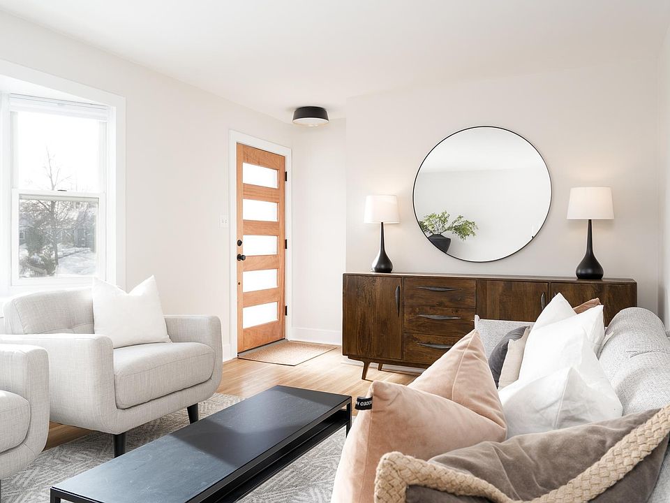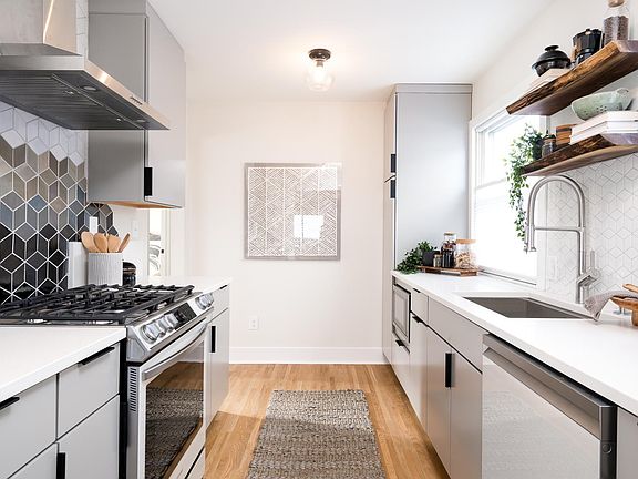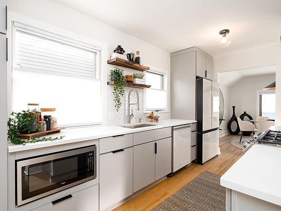 Exquisite remodel w/ high end finishes just steps away from Kenny Park. You will notice the quality & attention to detail upon first entering your home, where a solid mahogany front door greets you. The modern kitchen flaunts a one of a kind custom backsplash by local tile artisans Mercury Mosaics, quartz countertops, ample cabinet space & Samsung Bespoke appliances w/ white glass panel fronts. Beyond the kitchen is your stunning dining room which overlooks a fully fenced backyard. 2 bedrooms, gorgeous bath & beautiful refinished white oak floors finish off the main level. Upper level hosts the primary suite allowing room for a king sized bed & a spa-like ¾ bath. Unwind in the lower level while sitting in front of your gas FP & live-edge maple dry bar. The LL also has the 4th bedroom & a fully remodeled ½ bath. Look forward to summer grilling on your covered back patio while enjoying the landscaping & raised beds. Newer roof & siding. Come & see why people love the Kenny neighborhood!