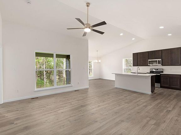 This McBride Homes new construction Aspen II Ranch model features 3 BR, 2 BA is ready NOW! Great open floorplan with vaulted ceilings, 6ft windows, & beautiful wood laminate flooring throughout main living areas. Covered future back patio area w/sliding glass doors off dining area. Kitchen features large island w/flush countertop for breakfast bar, dark 42in cabinets, quartz countertops, stainless steel GE appliances, & large walkin pantry. Master suite: large window, dual closets including one large walkin closet, & private master bath w/double sink vanity & walkin shower. Ceiling fan in family room & prewires for ceiling fans in bedrooms & future patio area. Home pricing advertised is lowest price including all of Seller’s available promotions. Prices, financing, promotion, & offers subject to change without notice. Some promotions and offers do include using the Seller’s preferred Lender & Title Company. Always see the community sales consultant for the latest details.