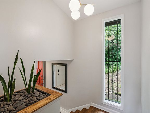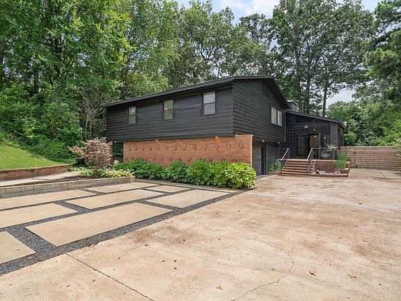 This modern home has a cool midcentury vibe, updated for today. The focal point of the spacious living room with vaulted ceiling and gorgeous hardwood is the new custom sliding door to the large screened porch. A perfect retreat! The renovated kitchen, bathed in natural light from the dining room windows, is open to a cozy den with gas fireplace. The ceiling-height custom cabinetry in the den adds storage and display space—and a touch of glam crowned with a rolling library ladder. From the den you step to a second covered patio with original wrought iron screening. This welcoming space is perfect as a friends' entrance. The formal entry lies beyond a secret courtyard with a curving brick wall. What a welcome! Major updates—roof, HVAC, appliances, lighting—are done, plus there are so many bonuses like modern exterior lighting, extra parking, pantry, mudroom, modern fencing, even a locking mailbox. With renovated bathrooms, convenient location, and large yard, it checks all the boxes!
