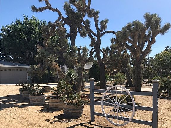 Spacious and bright, recently updated 2-bedroom, 1-bath home on a large lot with natural landscape and huge Joshua Trees. Located in a quiet neighborhood, close and convenient to schools, stores, and restaurants. Enjoy comfortable living year-round with the newer heating and cooling system, including in the insulated/finished garage. Save on utility bills and utilize the sunlight from the modern energy-efficient 12" Solatube skylights placed throughout the house The expanded kitchen opens to the airy living room. Two generously sized bedrooms with big windows. Covered stamped-concrete porches in front and back to take in gorgeous sunrises and sunsets. An oversized fenced back yard offers plenty of space for all the toys, pets, and fun out-door living. Storage galore with attached 2-car garage and 3 sheds. House is freshly painted, with newer roof, newer garage door and opener, and newer appliances. This great house is ready for you to just move right in! Seller is licensed real estate Broker.
