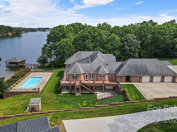 Stunning waterfront estate located on a point lot offering panoramic views of Lake Hickory's main channel, plus an in-ground pool, 3-car garage, and over 5,200 HSF and 2,000 SF workshop with garage bay. Featuring gracious main-level living, this top-quality custom home features an inviting foyer opening onto a dining room with 12' ceiling and open great room with fireplace flanked with built-ins and overlooking the lake and pool patio. The open kitchen area features stainless Thermador gas range, center island, bar seating, breakfast area, keeping room with fireplace and panoramic views of the water, plus adjacent office, laundry room, and breezeway connecting to the 3-car garage. The main level also offers three bedrooms, including two with Jack & Jill bath, and a deluxe primary suite overlooking the lake and offering two walk-in closets and dual bathrooms with connecting shower. Lower level rec room, guest suite, full bath, and huge workshop. 190' of lake frontage with covered dock.